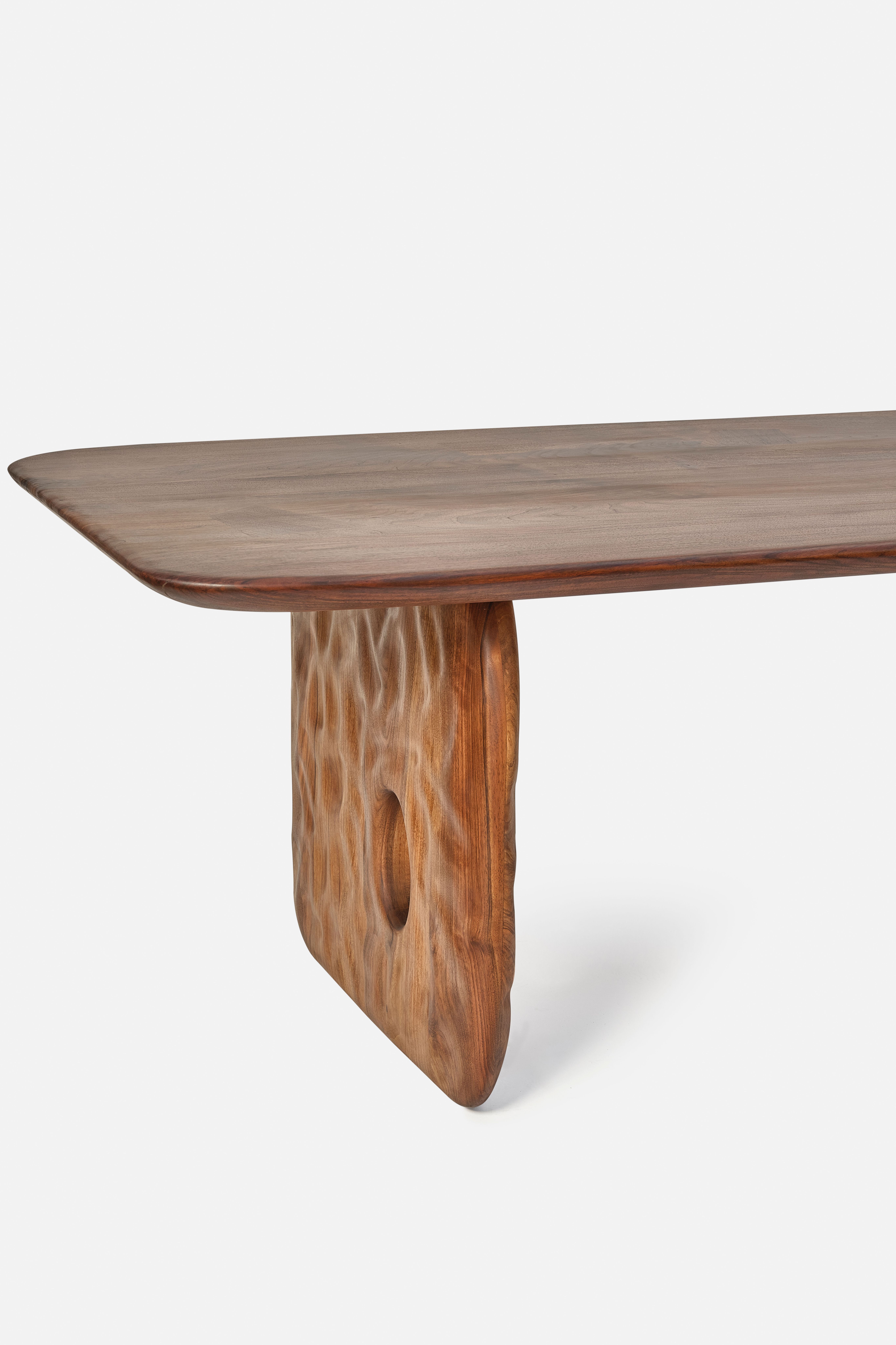 The Kagrai Dining Table is inspired by the captivating beauty of nature, where elegance and strength coexist harmoniously. Crafted with precision from premium American Claro Walnut, this table highlights rich textures and distinctive grain patterns, ensuring that each piece is unique. With its timeless design, the Kagrai Dining Table complements both modern and traditional interiors, bringing warmth, character, and a touch of sophisticated artistry to any dining space. Every table is a reflection of natural beauty, making it a one-of-a-kind addition to your space.