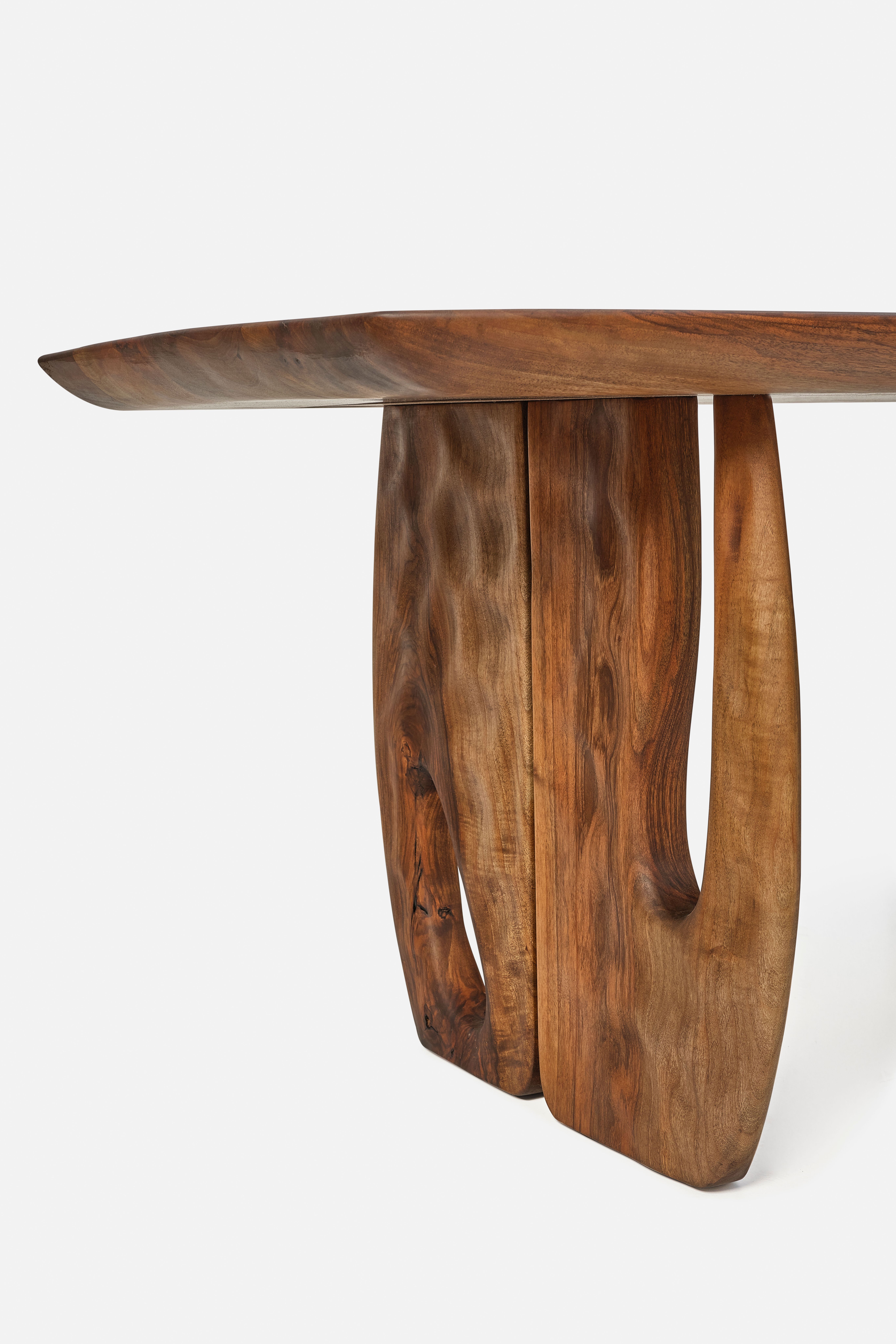 The Kaya Dining Table is a seamless blend of natural beauty and lasting elegance, crafted from premium American Claro Walnut. Its striking grain patterns and rich tones infuse any dining space with warmth and sophistication. Built for durability, this table combines timeless design with everyday functionality, making it a captivating centerpiece that enhances your home with refined style and enduring charm.